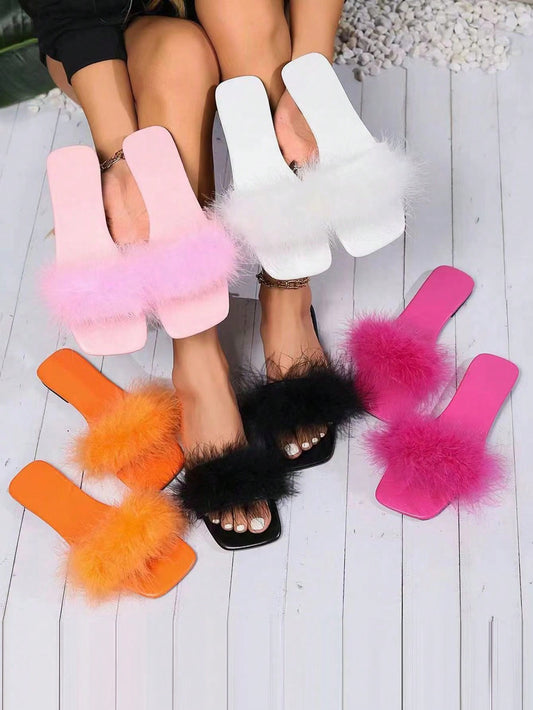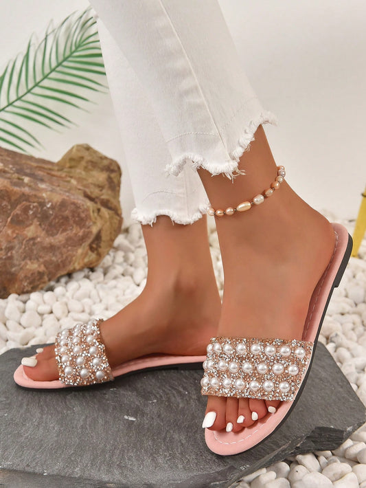 Mini Glamorous Flat Rhinestone Decor Open Toe Slide Sandals