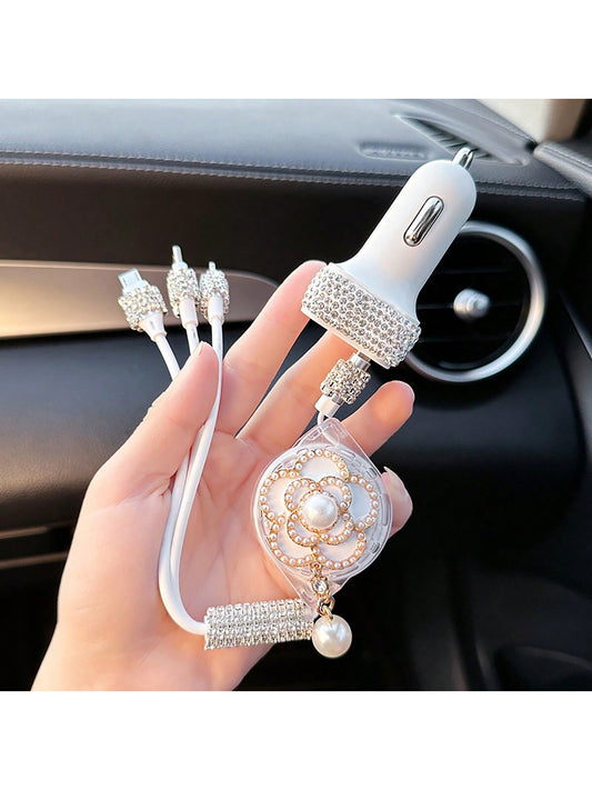 Diamond Inlaid Car Charger, Multi-Port Phone Data Cable