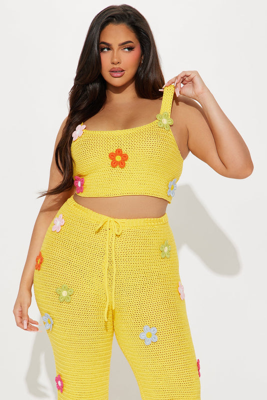 Joanna Yellow Flower Crochet Pant Set