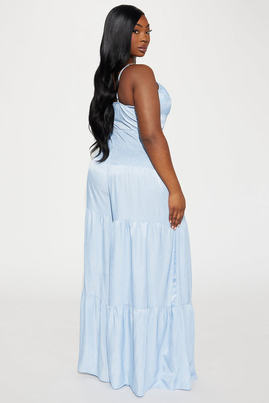 Kenna Light Wash Tiered Wide Leg Jumpsuit