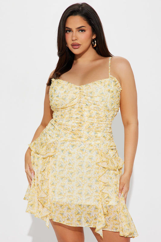 Luna Yellow Chiffon Mini Dress
